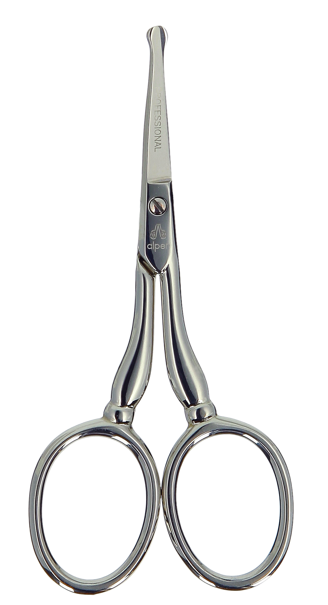 Forbici peli naso/orecchie, lama curva, filo microdentato poll. 3½